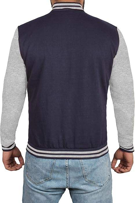 High School Letterman Men's Varsity Jacket Bomber Style Solid Pattern Fleece Baseball Jacket with Button Decoration