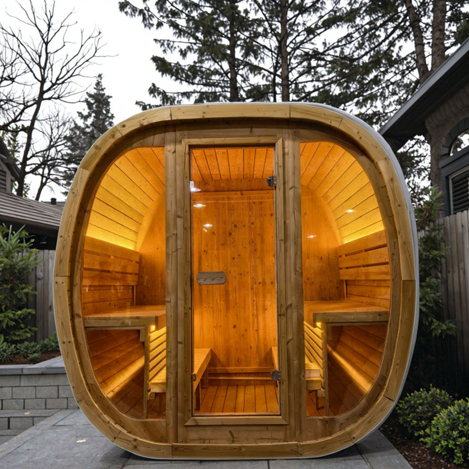 High Security luxury Outdoor Sauna Wooden Cabin Traditional Outdoor Steam Cube Sauna Outdoor