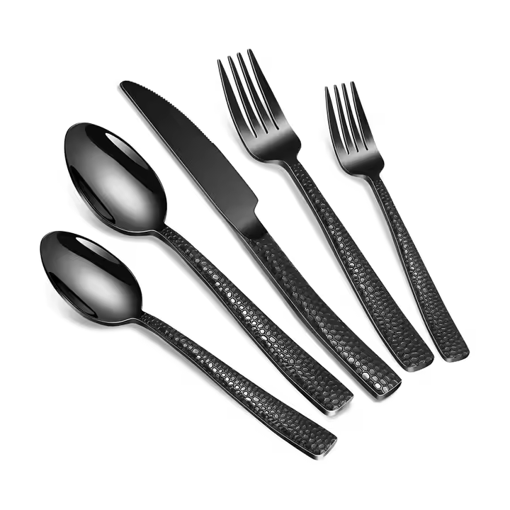 High Selling Cutlery Sets Luxury 5-Piece Stainless Steel Set Black & Gold Flatware Premium Metal Tableware Cutlery Set Gift Box