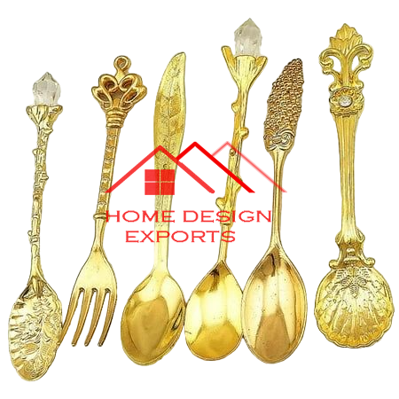 High Selling Hotel Use Accessories at Wholesale Price Golden and White Color Finished Metal Cutlery Flatware Set