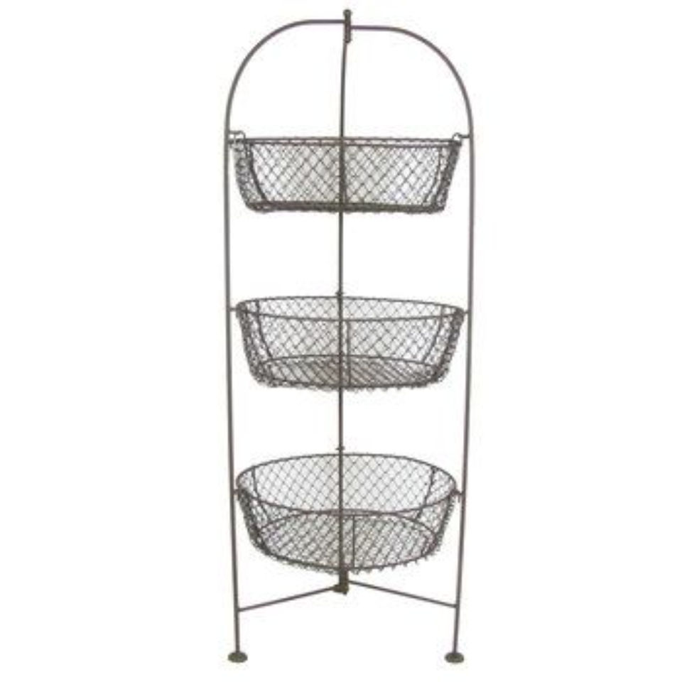 High Selling Metal Iron Round Shape Wire Mesh French Basket for Home Tabletop Decor Storage Basket With 3 Tier