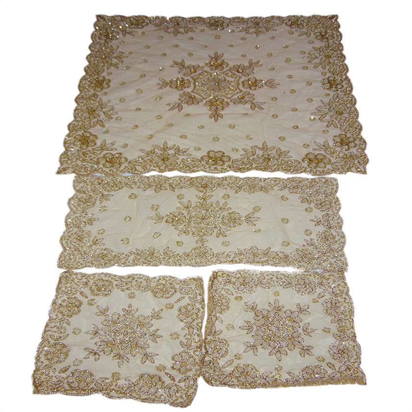 High Selling New Design Golden Net Fabric Handmade Beads Embroidery Dining Table Cover Wholesale Decorative Beaded Tablecloth