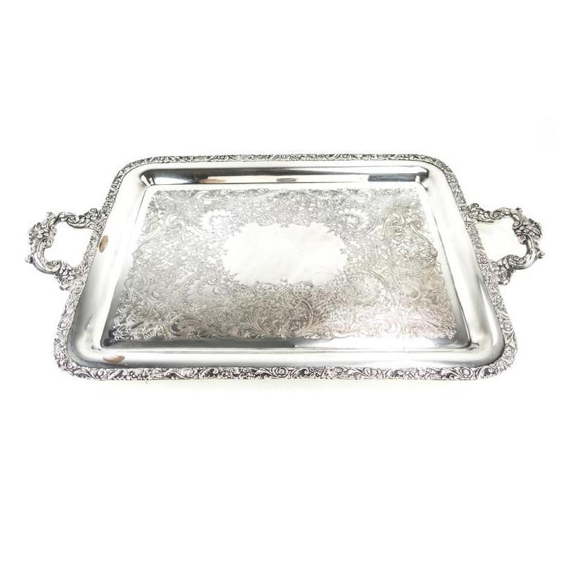 High Selling Vintage Elegant Reusable Metal Stainless Steel Silver Restaurant Round Serving Tray Customized Size Shape Colour