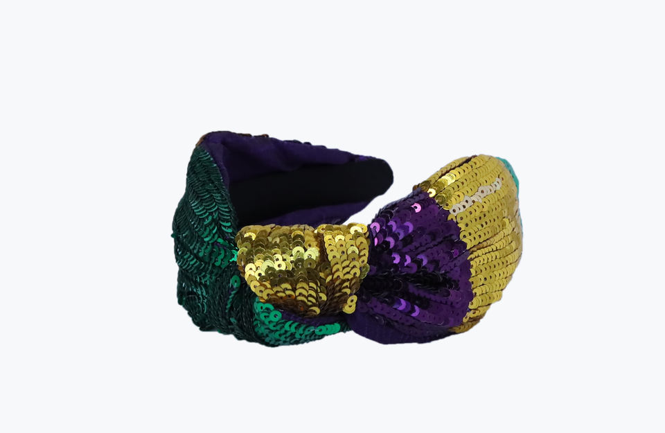 High Shine Durable Beaded Sequins Mardi Gras Headband Handmade Glitter Hairband Festival Party Accessories Comfortable Padded