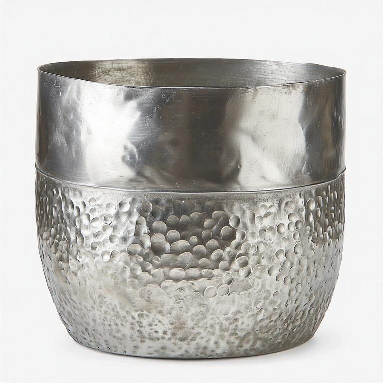 High Shine Hammered Planter With Classic Elegance In Silver Designed For Balcony Corners Or Refined Hotel Green Displays