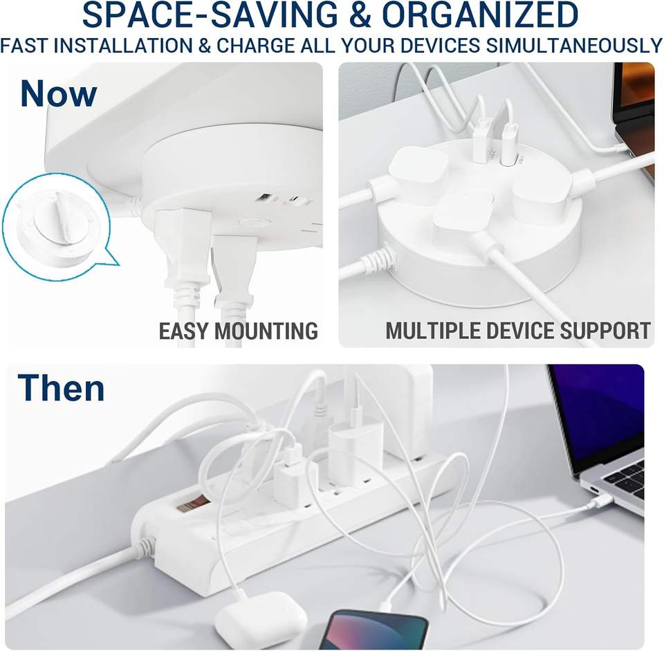Protection:3 AC 2 USB-C 1 USB-A QC4.0 PPS for iPhone Android Power Strip