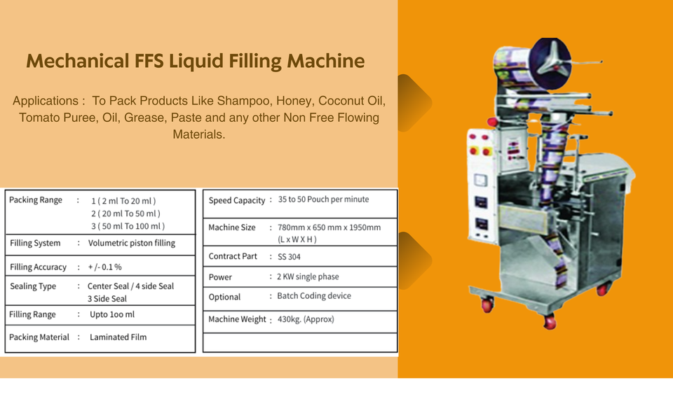 Suitable for:To pack liquids, viscous fluids, sauces, salad dressings etc