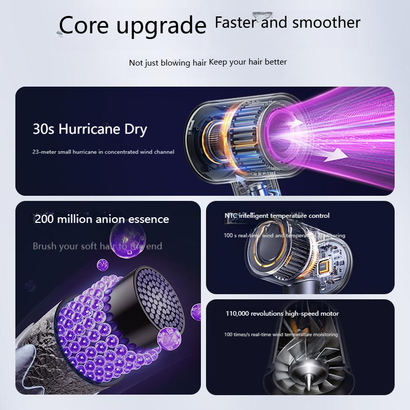 High Speed Hair Dryer Anion High Power Wind Temperature Digital Display Intelligent Temperature Control Rapid Drying Low Noise