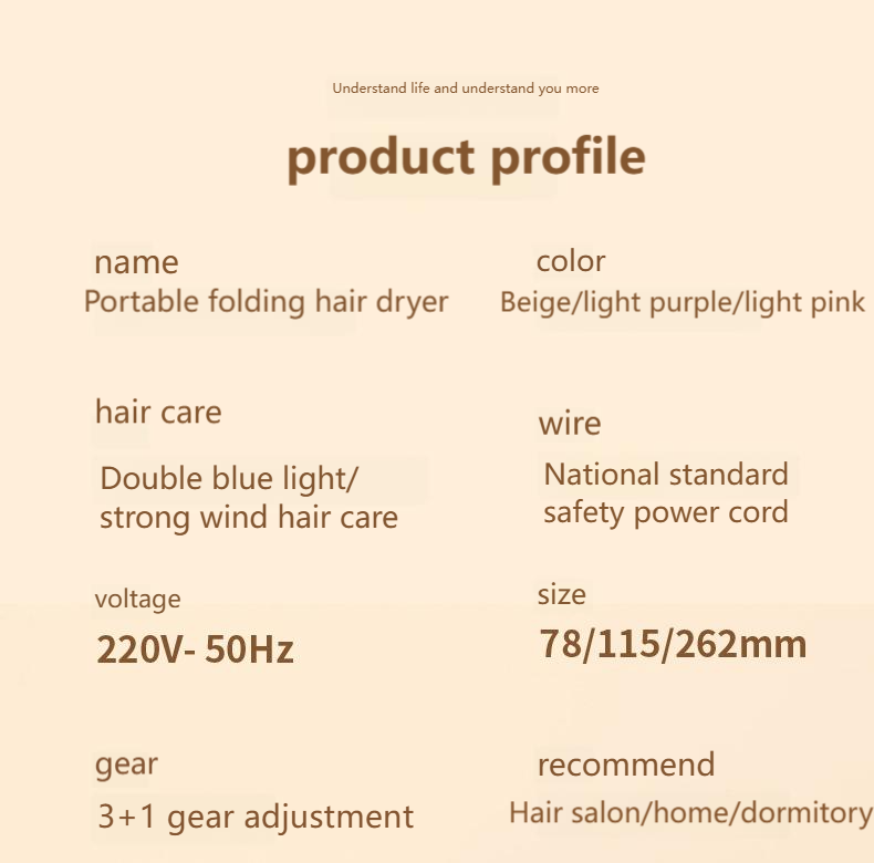 High Speed Hair Dryer Home Travel Portable Folding Hair Dryer Dormitory Constant Temperature High Power Quick Drying Hair Care