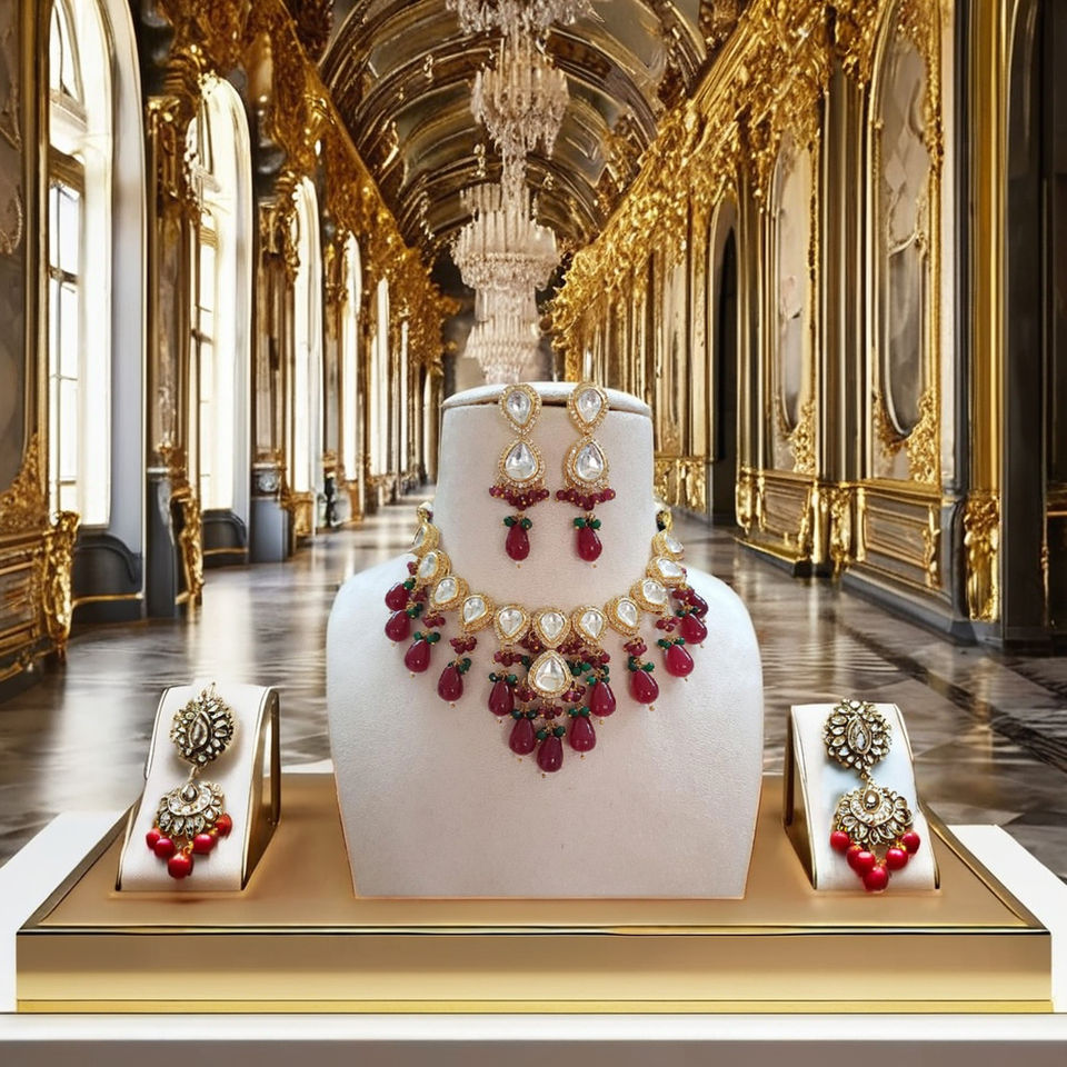High Standard Imitation Pearl Heavy Kundan Customized Ethnic Choker Jewelry Set for Women Gold Plated Brass Backside Minakari