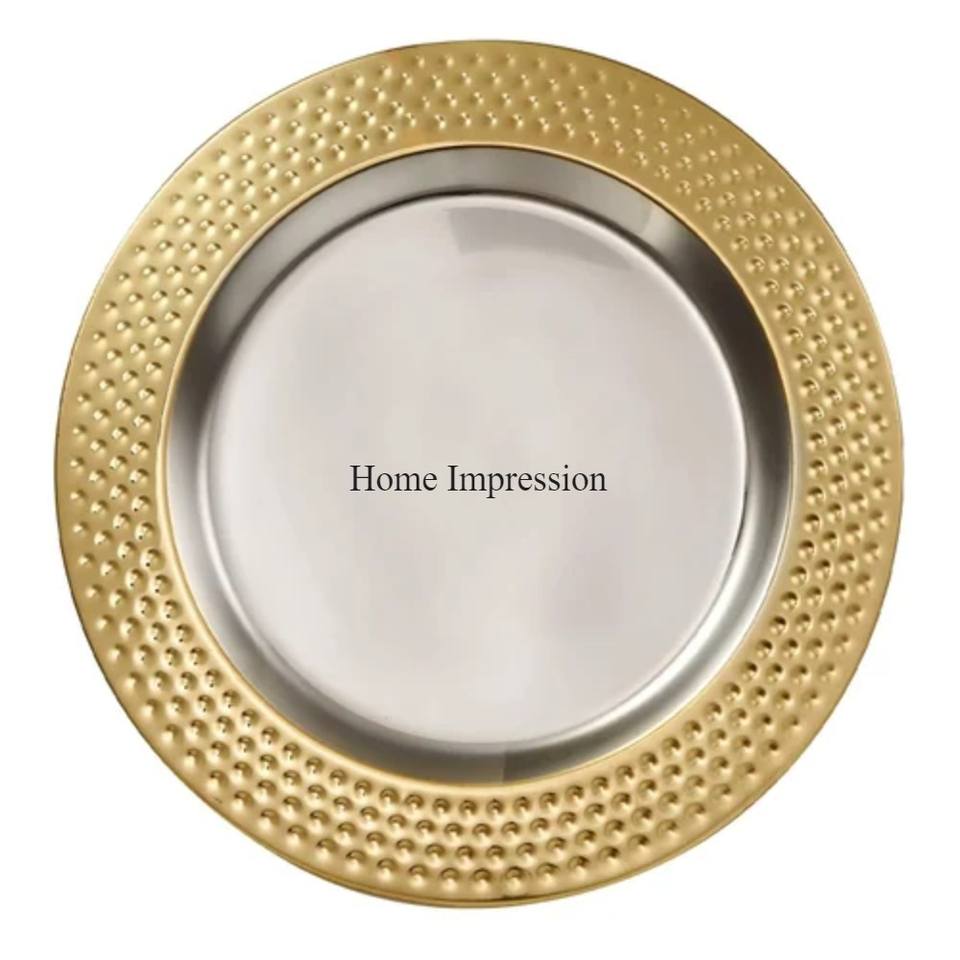 High Standard Quality Gold and Silver Plated Hammered Texture Unique Designing Charger Plate for Wedding Table Decoration Supply