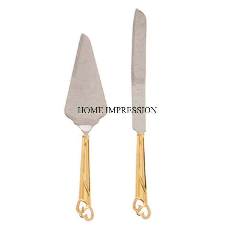 High Standard Quality Silver Color Finished Shiny Mirror Polished Handles Wedding and Parties Cake Server and Knife From India
