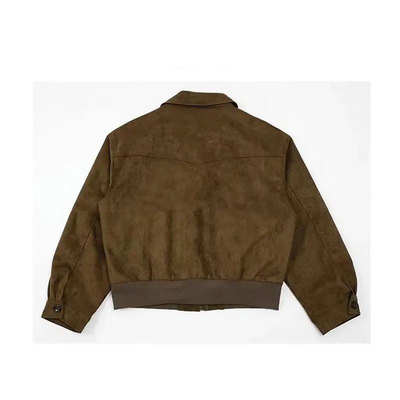 High Street Genuine Leather Canvas Velvet Regular Fit Men's Loose Fit Cool Versatile Motorcycle Lapel Flight Casual Jacket