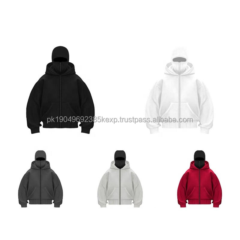 High Street Contrast Color Style Men's Outdoor Ninja Full Face Masked Zip Balaclava Hoodie