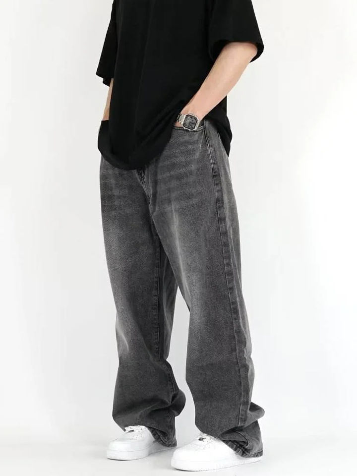 High Street Custom Men's Eco-Friendly 100% Cotton Jeans Yellow Mud Straight-leg Slim Vintage Style Fashion Hip Hop Stonewashed