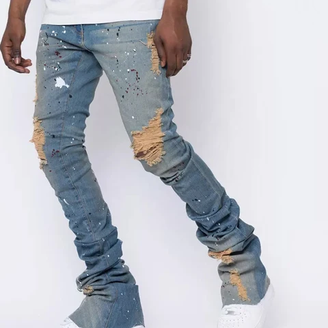High Street Fashion Mens Jeans Night Club Black White Color Personal Designer Printed Jeans Men Punk Pants Skinny Hip Hop Jeans