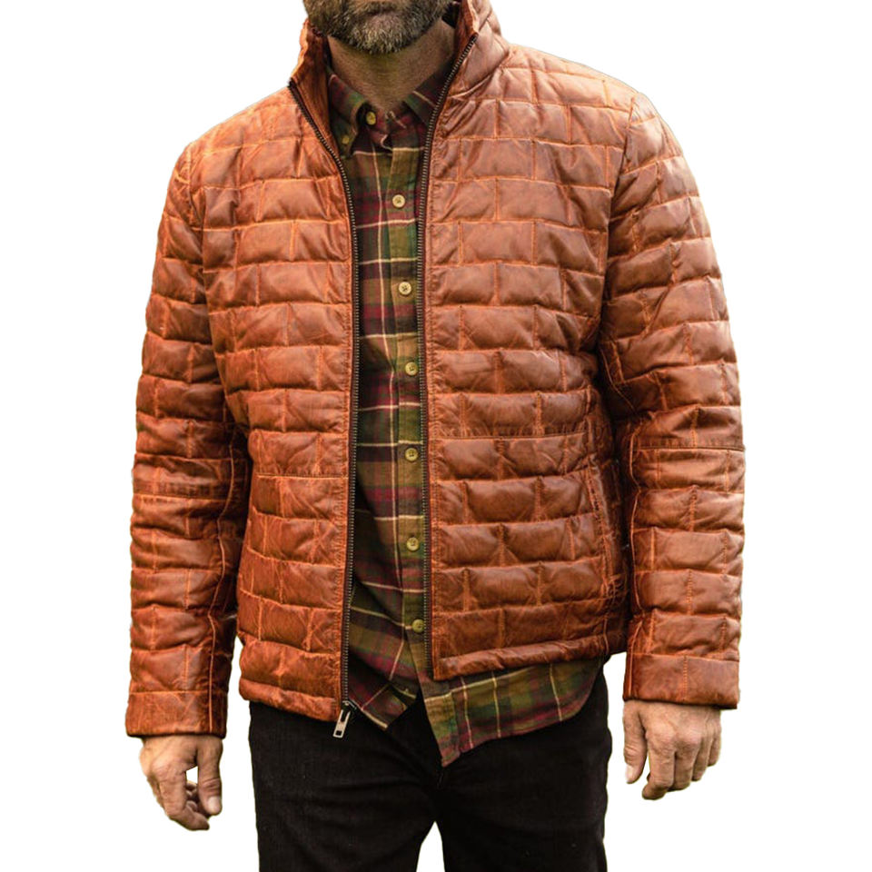 High Street High Quality Leather Outdoor Puffer Jacket Men Oem Service Breathable Best Custom Leather Puffer Jacket