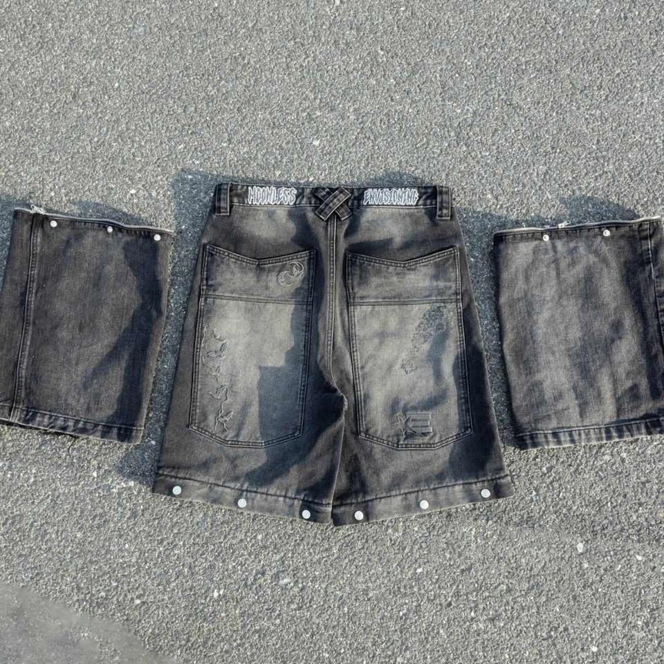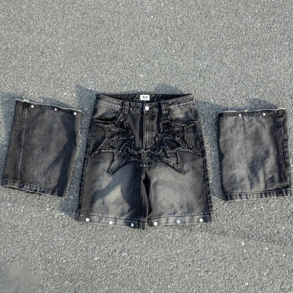 High Street Hip Hop Designer Men's Jeans Custom Applique Embroidered Stone Wash Straight Leg Pants Split Fashionable Loose
