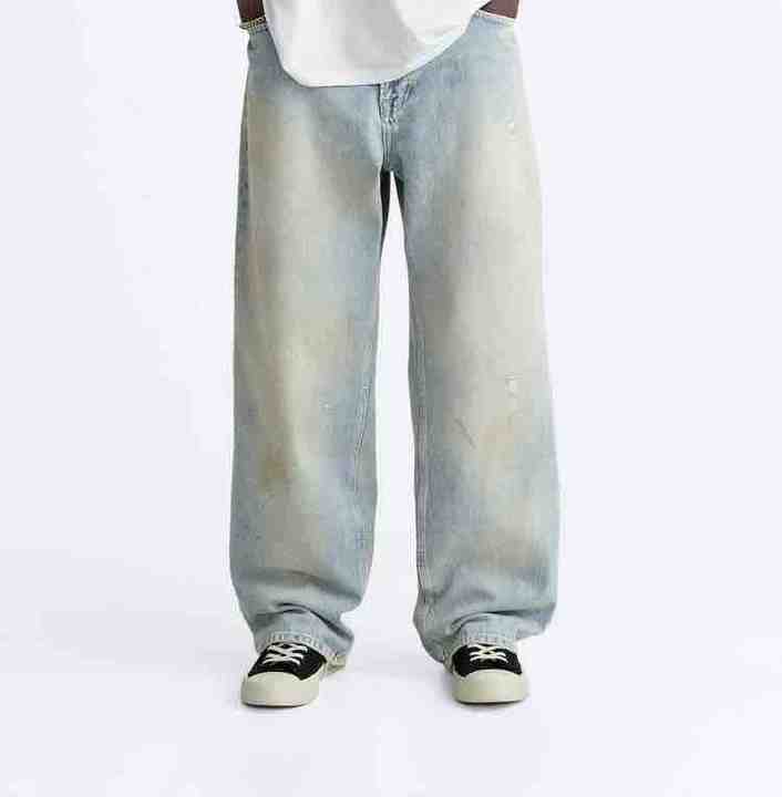 High Street Jeans for Men Straight Blue Wide Leg Jeans Wholesale Low MOQ Loose Fit Streetwear Vintage Men's Baggy Jeans