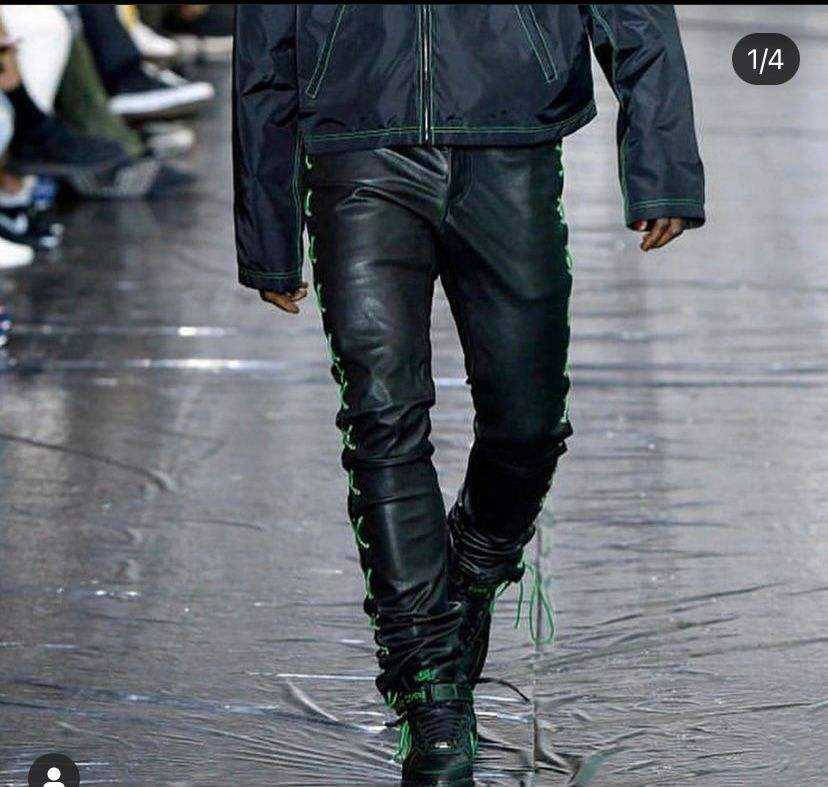 High Street Men's Casual Cargo Pants Pleated Design Multi-Pockets Mid Loose Fit Straight Leg Faux Leather Motorcycle Trousers