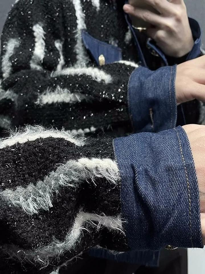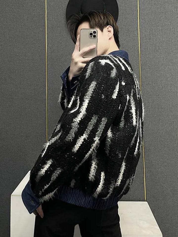 High Street Men's Vintage Jacket Single Breasted Striped Casual Outerwear Coat Spring Autumn Loose Fit Denim Patchwork Outerwear