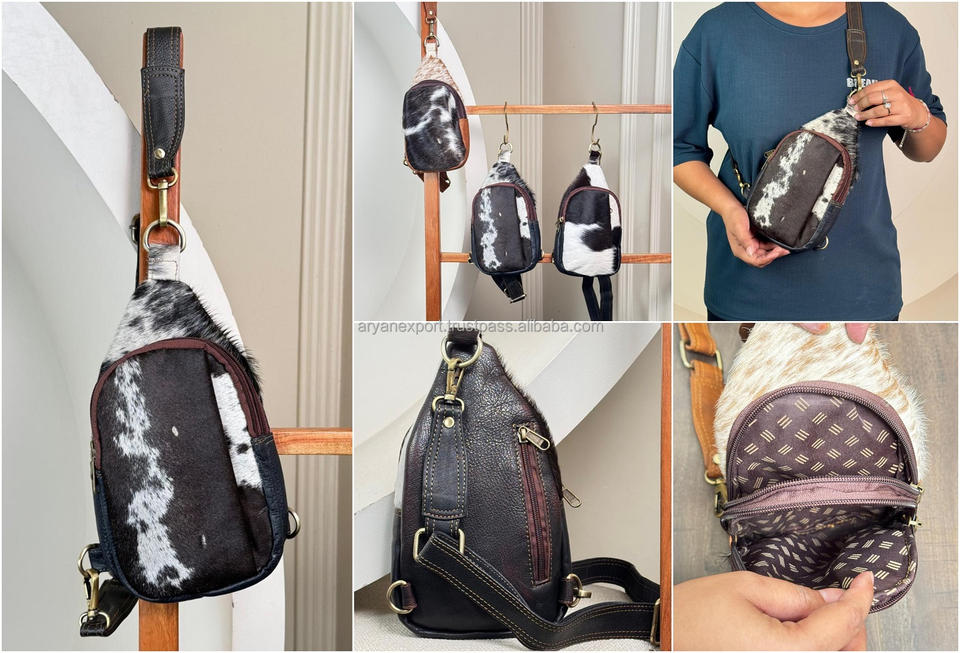 Product name:Hair-On Cowhide Leather Crossbody Fanny Chest Bag