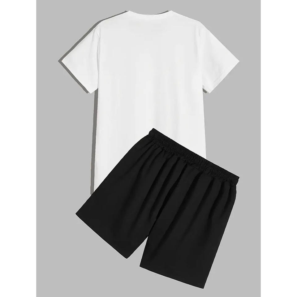 High Street Plus Size Men's Sets From Pakistan Short Sleeve T-shirt And Waistband Shorts Set, Casual Sports Regular Summer Suit