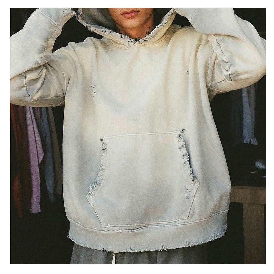 High Street Pullover Hooded Sweatshirt Heavyweight French Terry Oversized Vintage Distressed Acid Wash Sun Faded Hoodie Men