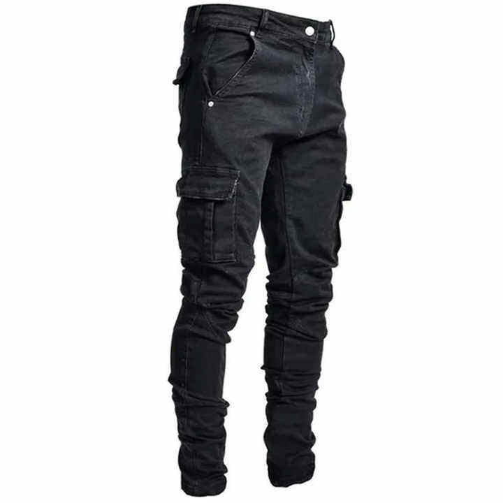 High Street Quality Light Blue Vintage Washed Jogger Jeans Men Custom Logo Shinny Cargo Pocket 100% Cotton Knitted Coated Fabric