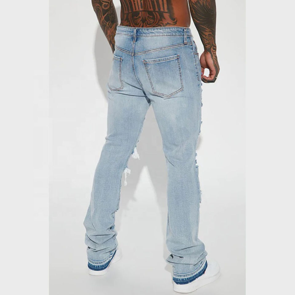 High Street Retro Fashion Washed Jean Men's Distressed Ripped Off Wide Leg Jeans Raw Edge Flare Jeans