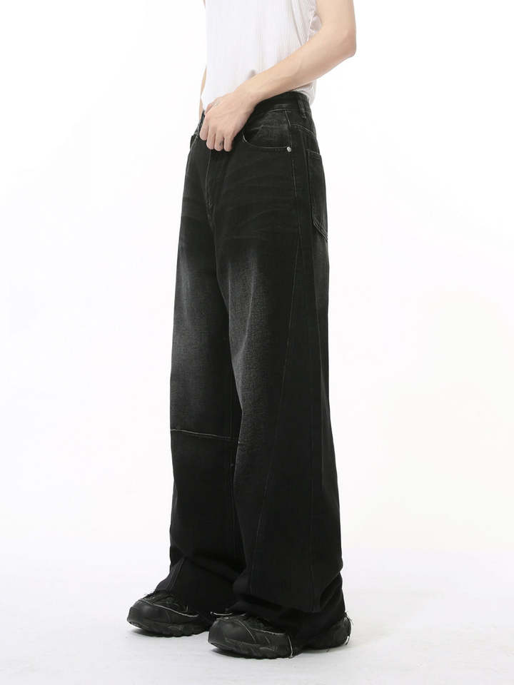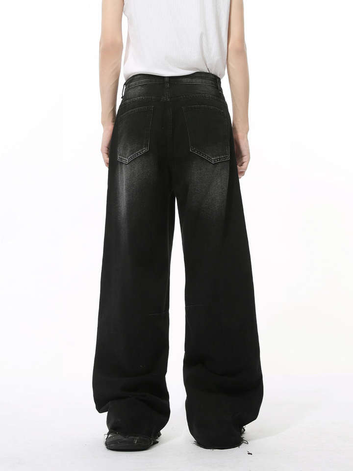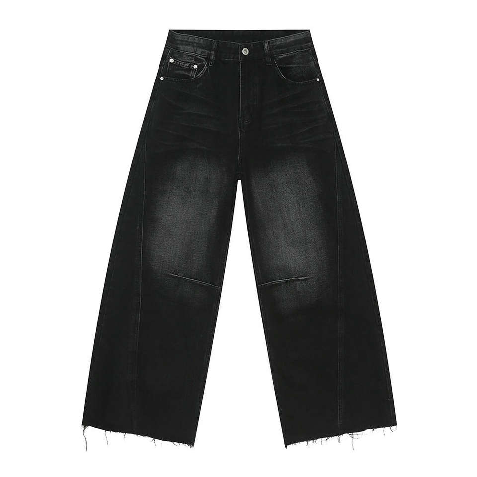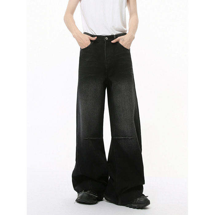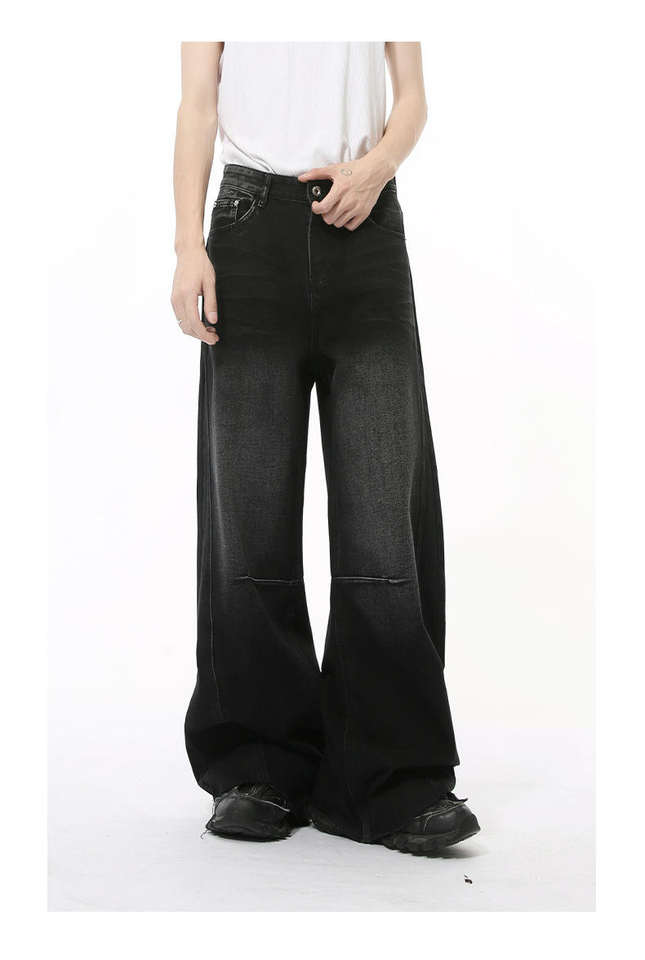 High Street Style Men's Wide Leg Black Denim Pants Loose Baggy Long Straight Fit Distressed Wash Jeans Hip Hop All Seasons