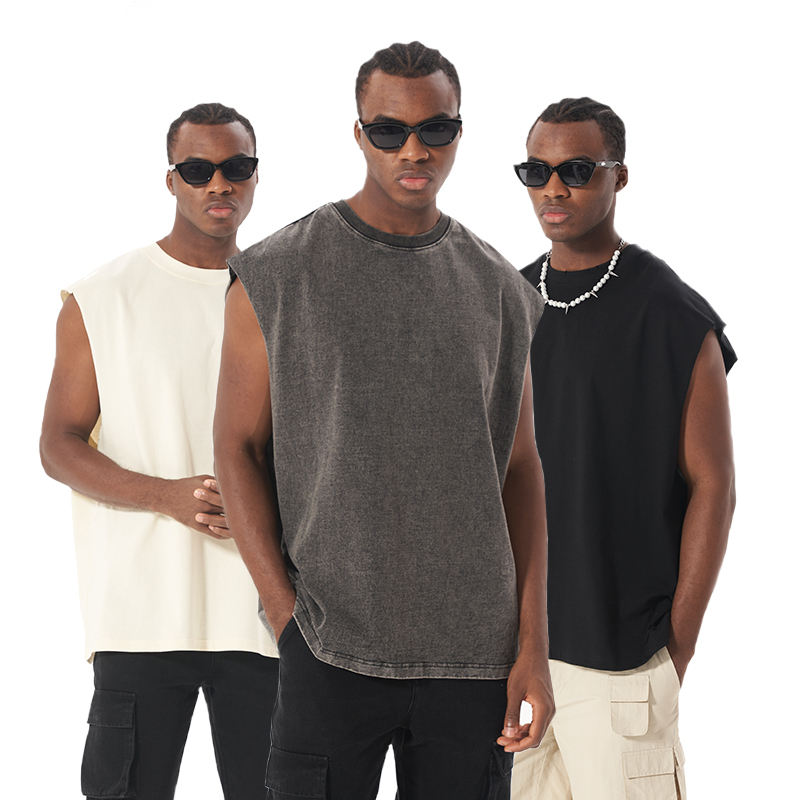 High Street Washed Distressed Sleeveless Vest Acid Wash Gym Wear Tshirt Vintage Men's Clothing Tank Top