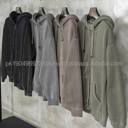 High Street Winter Zip Up hoodies Vintage Old Wash Solid Hooded Zipper Sweater Men's Oversized Hoodie