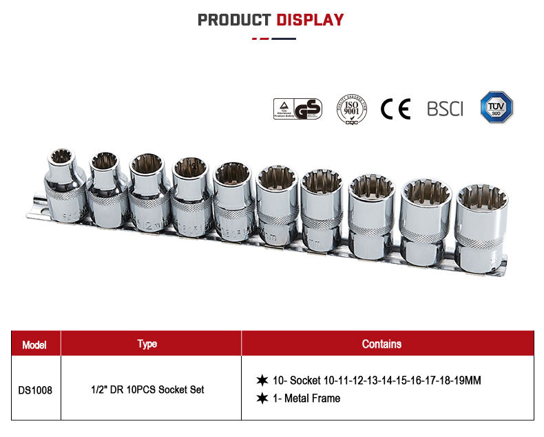 Combination, SOCKET, RATCHET HANDLE, SPINNER HANDLE, EXTENSION BAR, UNIVERSAL JOINT, DEEP SOCKET, STAR SOCKET, HEX KEY WRENCH