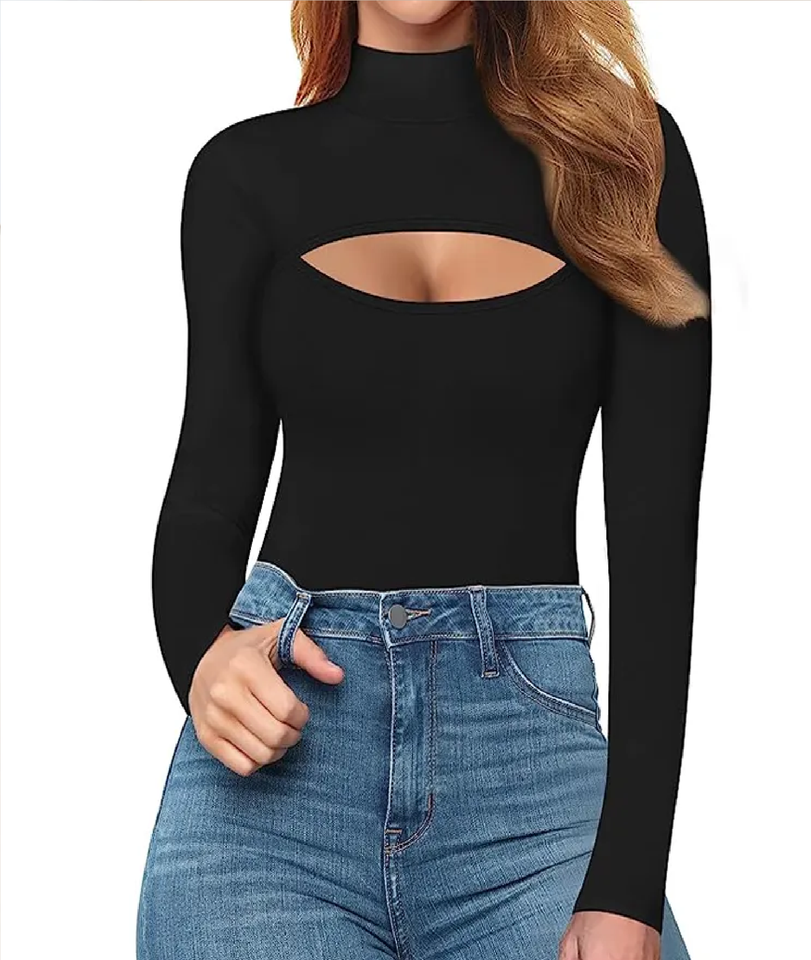 High Stretchy Fabric Bodysuit Neck Cutout Front T Shirt Sleeveless Long Sleeve Short Sleeve Bodysuit For Women Tank Top