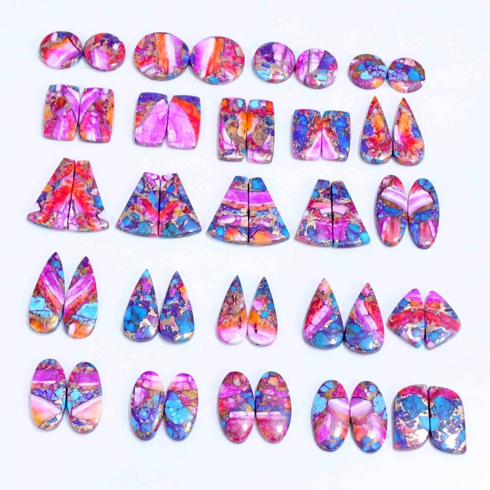 High Top Pink Dahlia Spiny Oyster Copper Turquoise Pair Loose Gemstone Cabochon Pair Loose Gemstone for Jewellery Making