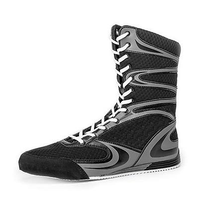 High-Top Professional Kick Boxing Boots Customized Logo Design Black Wrestling Mesh Leather Shoes with Rubber Insole for Winter