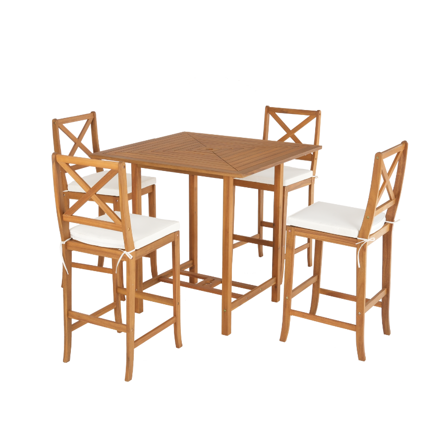 High-Top Wooden Patio Dining Set | Modern & Durable Outdoor Furniture for Garden, Resorts & Villas | Vietnam Manufacturer