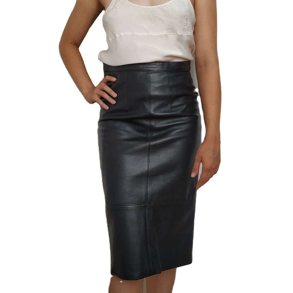 High Trending Genuine Leather Eco-Friendly Midi Office Use Casual Wear Women Skirt New Arrival Solid Color High Waist