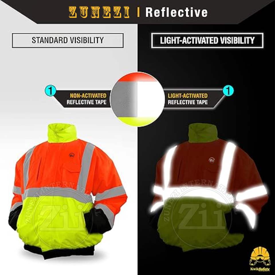 High Visibility ANSI Class 1 EN ISO 20471 Class 2 Cotton Fleece Construction Jacket Breathable Reflective LED Flash Safety