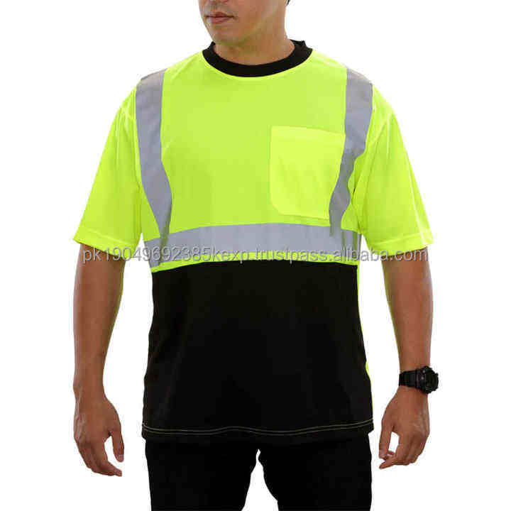 High Visibility Heavy Duty Breathable Hi Vis Safety Moisture Shirt Men's Short Sleeve 100% Cotton Reflective T-Shirt Formal