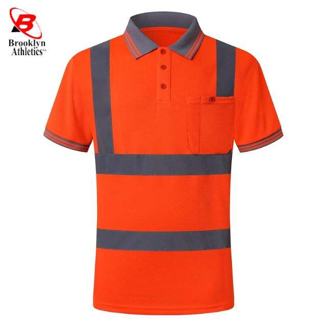 High Visibility Lightweight Breathable Birdseyes Short Sleeved Polo Shirt Safety Shirt Workwear Reflective Tape Yellow Orange