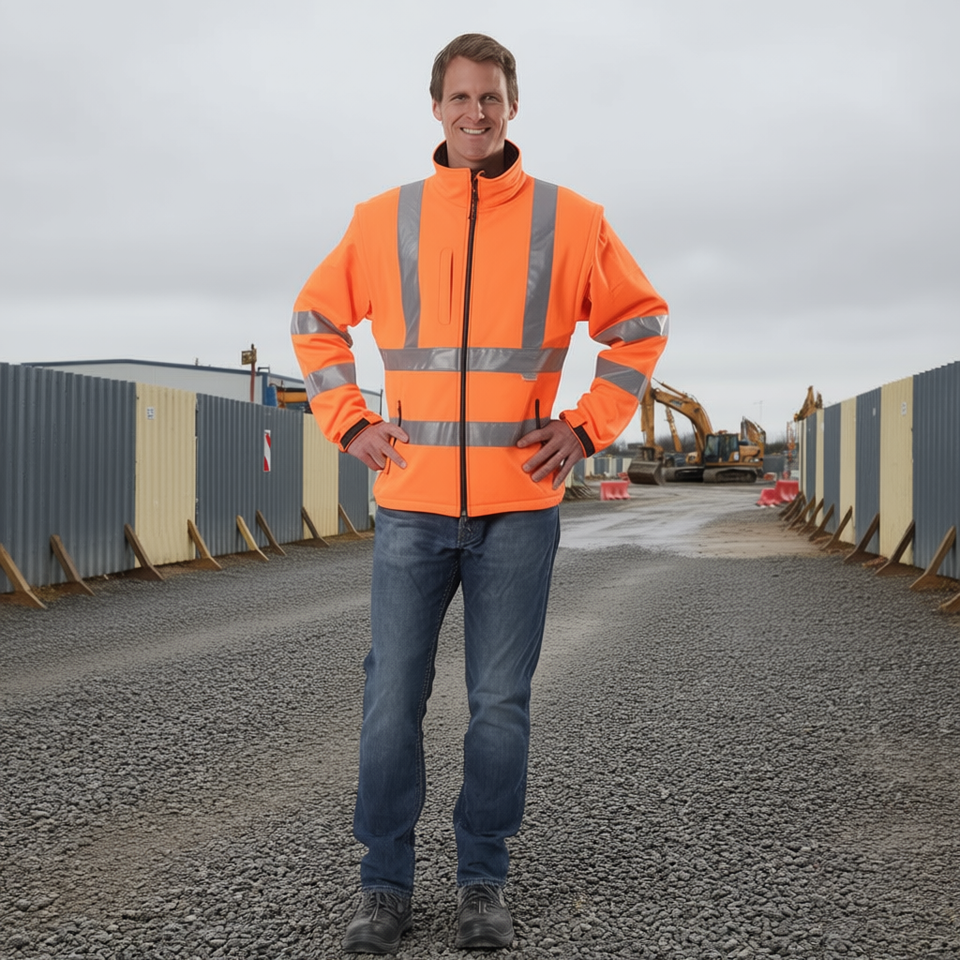 High-Visibility Orange Softshell Safety Jacket for Prevention