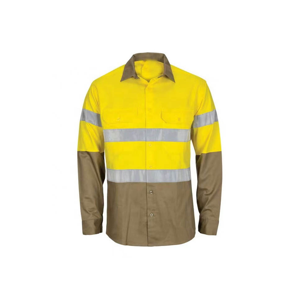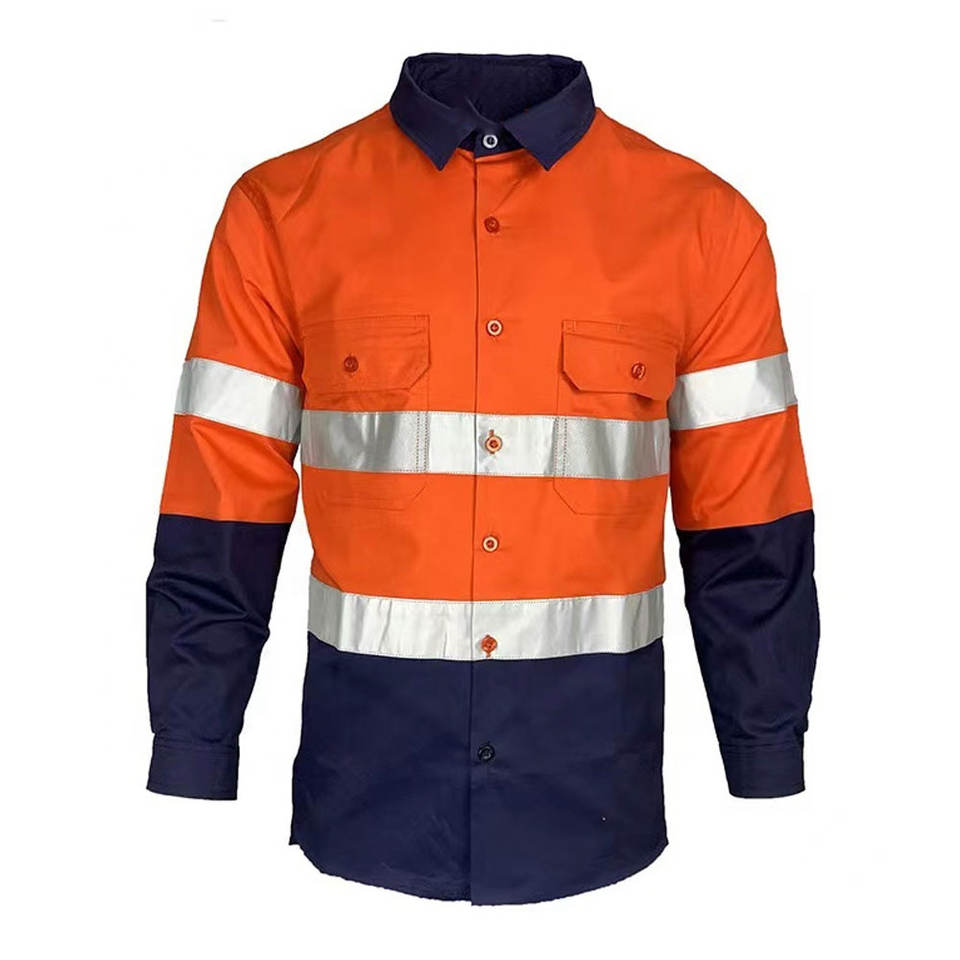 High Visibility Safety Reflective Work Wear Button-Up Shirt Customized Colors Logos 100% Cotton Satin Mandarin Collar Quick Dry