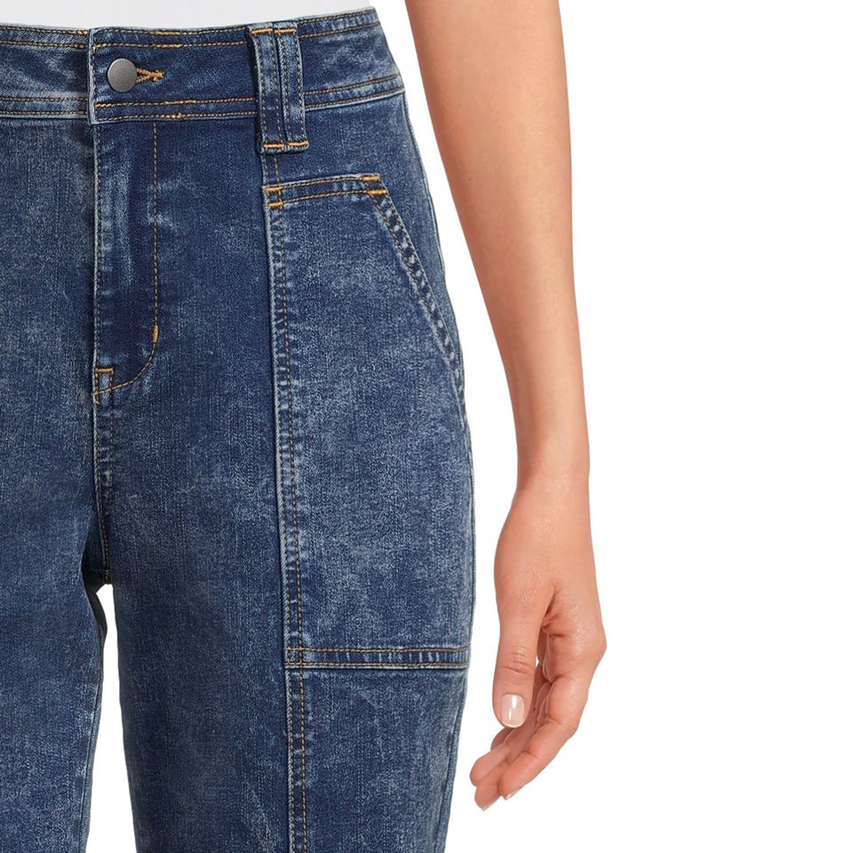 High Waist Boyfriend Women's Cargo Pants Streetwear Flap Pocket Casual Trousers Acid Washed Denim Jeans Pants for Women