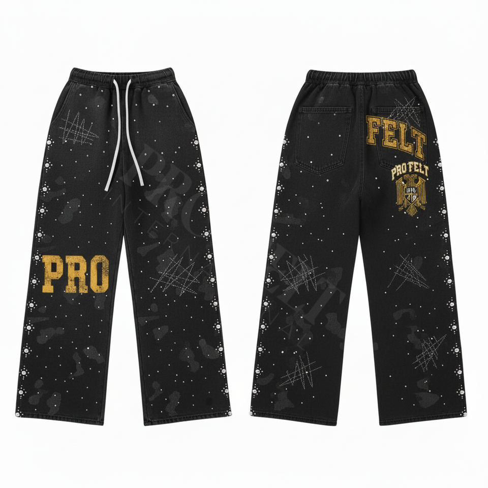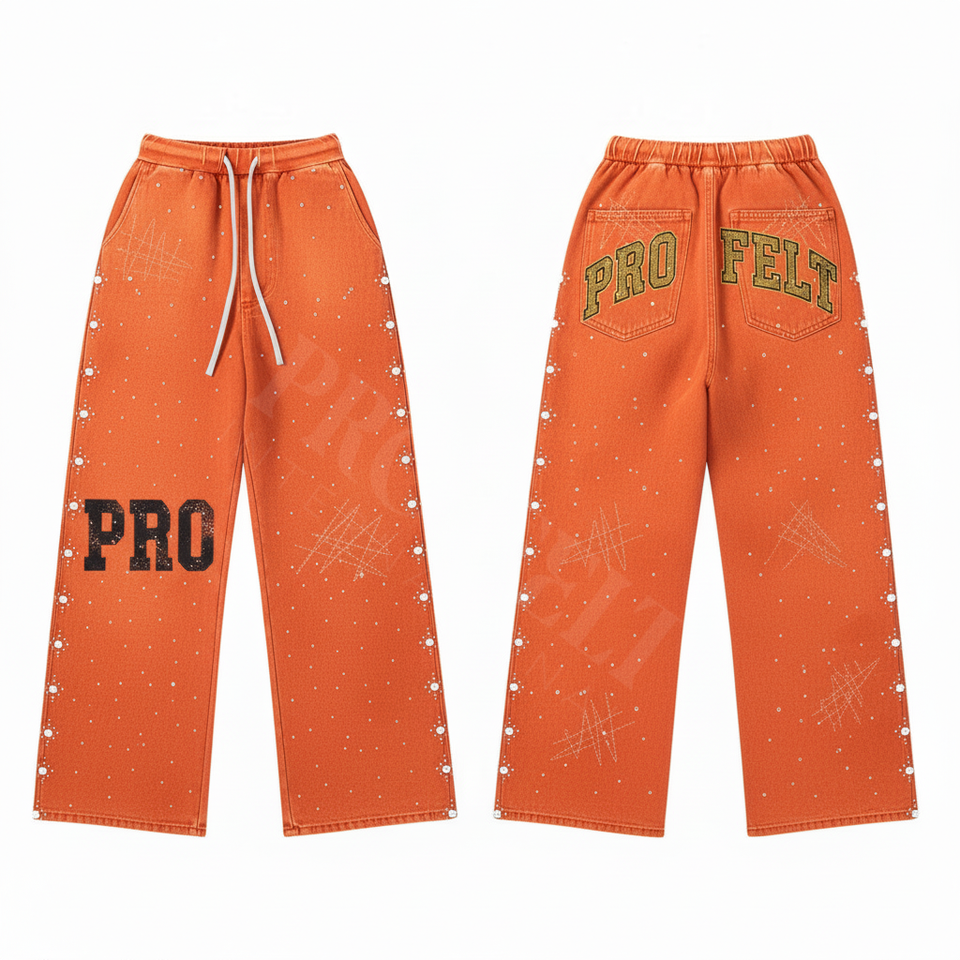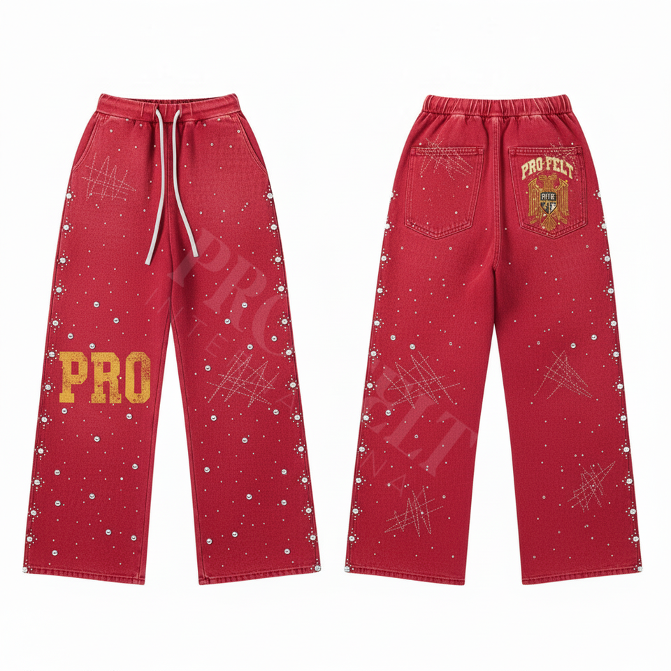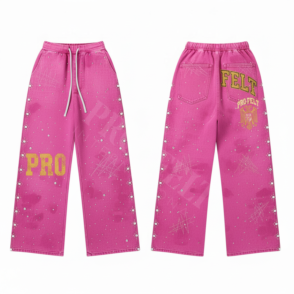 High Waist Pants with Sparkling Studs Custom Embroidery Print Casual Loose Fit with Waistband Stylish and Trendy Fashion Trouser