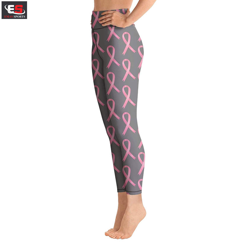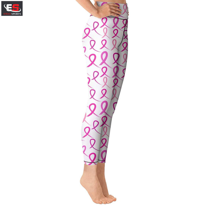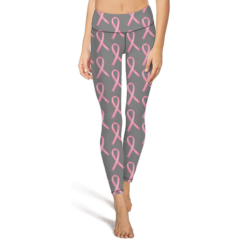High Waist Pink Ribbon Leggings for Active Women Comfortable Breast Cancer Awareness Gym Wear Run for the Cure