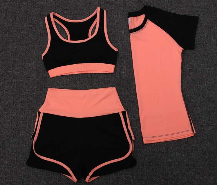 High Waist Solid Washed Yoga Sportswear 5-Piece Set for Women with Quick Dry Fabric Includes Bra Pants Shorts & T-Shirt