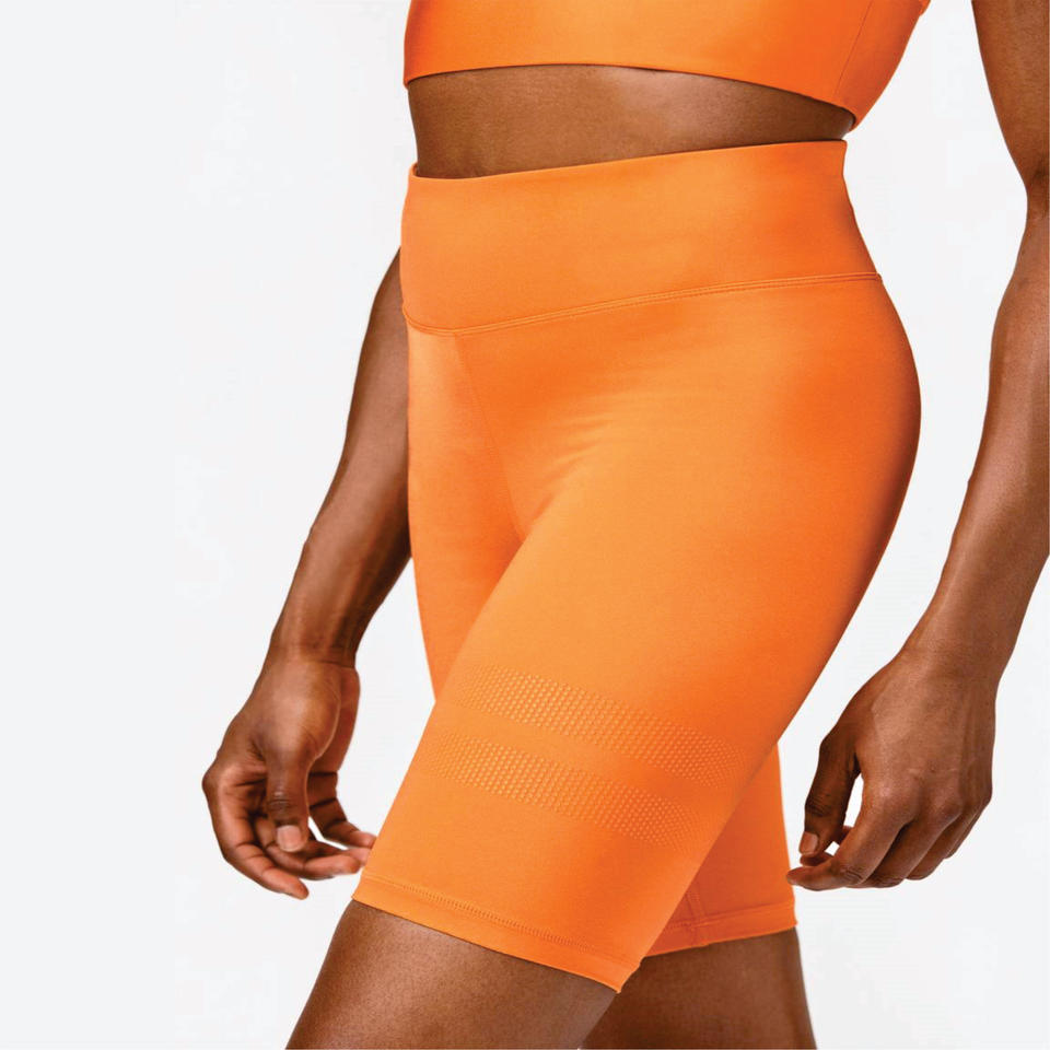 High Waist Squat Proof Pocket at Back Shiny Fabric 85% Polyamide 15% Elastane Sun Orange Bike Shorts