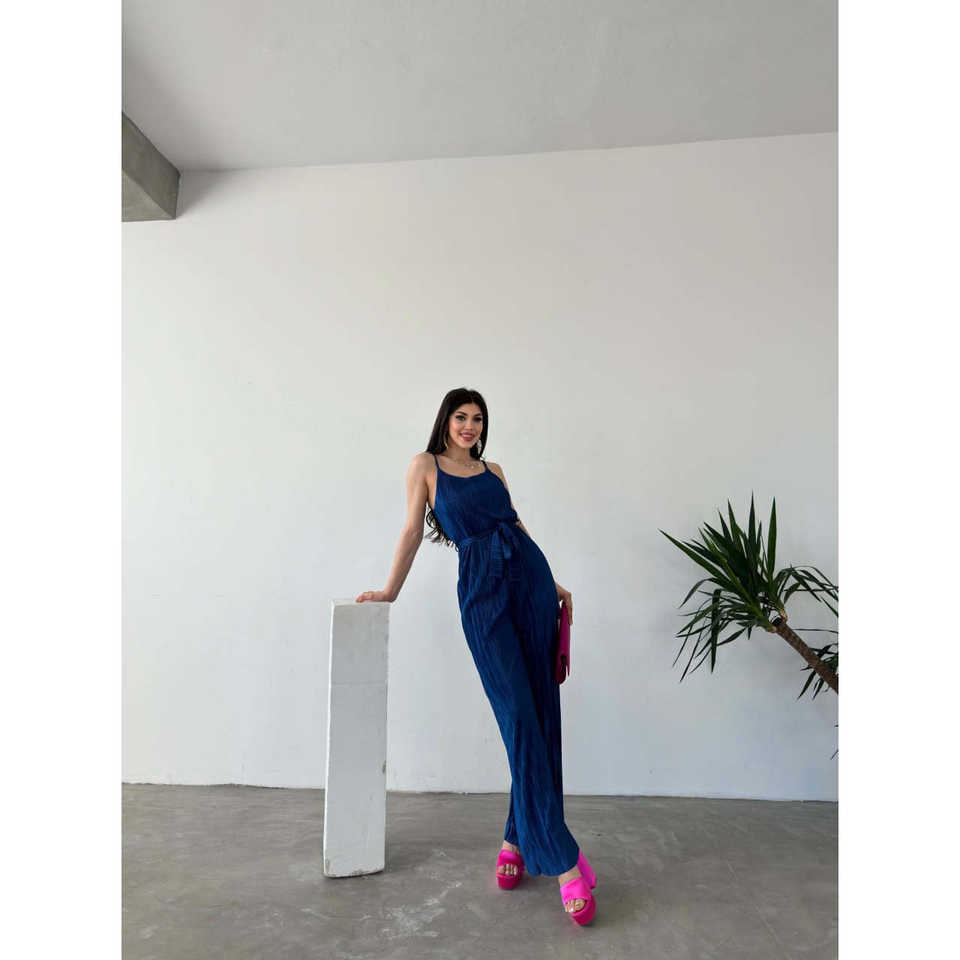 High Waist Strappy Belted Crinkle Jumpsuit Breathable Casual Style